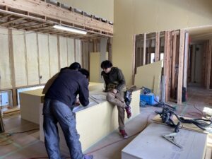 段々仕上っていくのが楽しみですね、外部は、EPS付加断熱工事と板金工事が残っていいます。