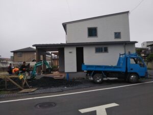 次の天神町のA様邸を見学してもらいました、昨日雨あがりからコンクリート打ちを行い