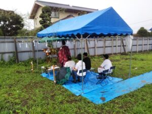 9時20分くらいから開始しました。準備の時は、雨は降ってなかったのですが