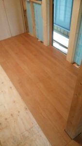 田沼町のA様邸のリノベです。壁に断熱材を入れ~床がはじまりました(^^♪