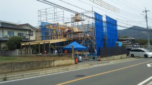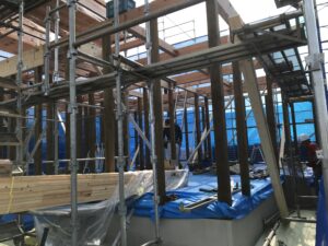 今回は、敷地の条件でポターンが使用できずに木造の骨組みを組みましたので