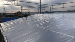 大屋根の遮熱シートまで終了しましたので雨対策、日陰対策もでき