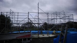 こちらは、並木町のT様邸です。今日足場を掛けました。明日材料搬入して