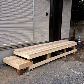 外構ができるまでということで、仮に「アンボン」棟梁が作ってくれましたが