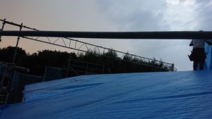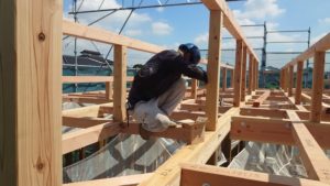 今日は、夕方雨になってしまいました。昨日は、雨が降らずに無事上棟することができました