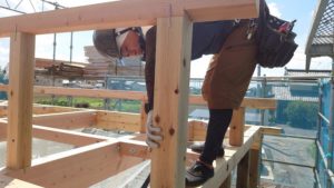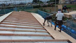 野地張りがはじまりました。「カメラマンだったうし君」野地板を出す