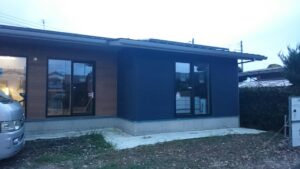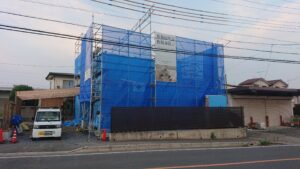 こちらは、佐野市犬伏新町のK様邸です。足場が無事解体され木工事担当の「さかな君」もほぼ完了して