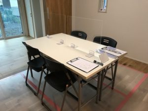 コロナ対策打合せもバッチリです! 1組のかた50分までとして、10分間換気消毒をします。(^^♪