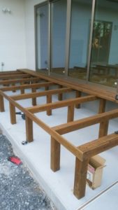 こちらは、堀米町のA様邸です。デッキ工事がはじまりました。