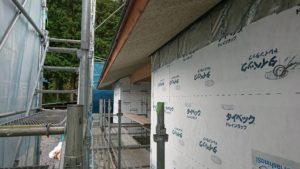 こちらは、閑馬町のN様邸です。鼻隠しの塗装、軒天の木毛版も張られて