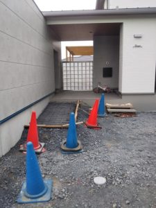 外構工事が延びてしまいましたが、ようやく車庫の土間コンが打てる段取りができました。