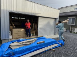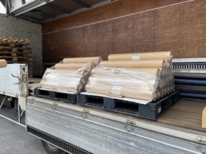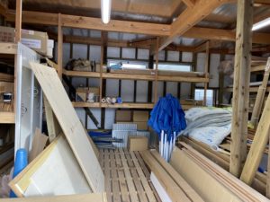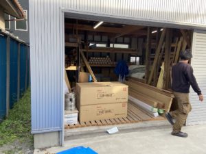 こちらは、倉庫の写真です。在庫の漆喰クロスがほとんどなくなり~昨日搬入しました。