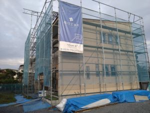 外壁工事がほぼ終わり足場解体工事を待つばかりですね。(板金、太陽光工事もありますが)