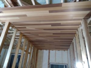 2階て天井は、レッドシダー張りがあり進んでいます。よくなりますね(^^♪
