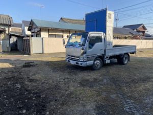 今日は、仮設トイレも設置しました、敷地に入ってきたとことです。