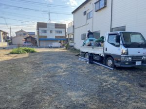 今日は、仮設トイレも設置しました、敷地に入ってきたとことです。