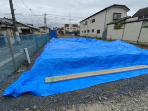 こちらは、大祝町のK様邸です。基礎の枠を外し~外部の砂利も入りました。