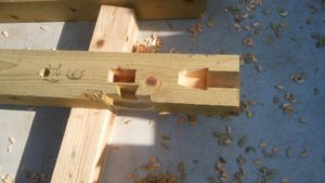 土台は、「加圧注入」の材料です。地元の桧を使用しています。継手の加工していある部分
