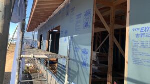 外部の耐力壁面材(EXハイパー)も打ち~順調ですね(^^)/