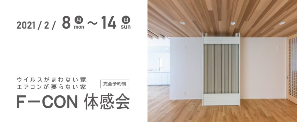 2月8日(月)~14日(日)team-Kモデルハウスにて、ウイルスが舞わない家「F-CON体感会」を開催します!