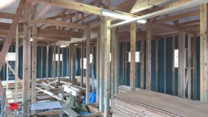 室内もこんな感じです。緑色は、ホウ酸を塗ったところです。