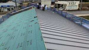 こちらは、藤岡町のK様邸です。昨日の現場写真です。半分屋根が終わりした。