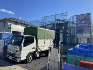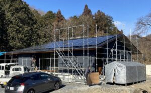 ウレタンの工事中の模様です。 30倍発泡+付加断熱(外張りQ1ボード)で
