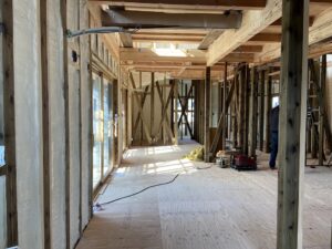 室内は、ウレタン工事が入り、荒床もでき~これから天井の下地~床張りという感じで