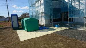 広い敷地の奥に建築しました。 検査は、見事合格です。(^^♪