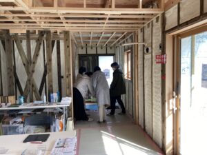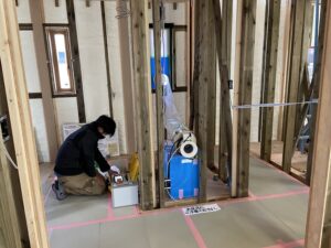気密を上げていきます。C値=1以下の住宅でないと換気性能が性能通り発揮できません