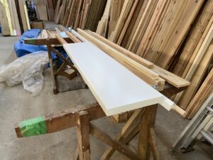 Y様邸の階段上がり框の材料です。36x280x1100の材料を現場にあった断面に加工を