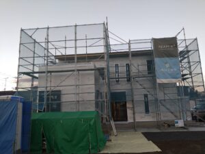 龍舞町のY様邸です。 足場が5mmメッシュなので建物がよく見えてバッチリですね(^^)/