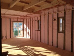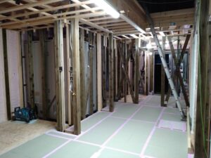 現在は、床を貼り、養生板を敷きはじめています。(^^♪