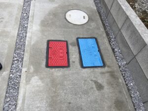 敷地に赤と、青のメートル器があり~