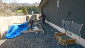 昨日もUPしました。閑馬町のN様邸です。陽気が良くなったタイミングで今日は、コンクリート打ちができました。(^^♪