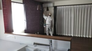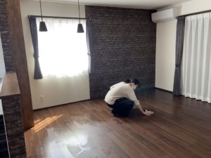 壁の噴霧と、床は、噴霧後の拭いておさえます。「久美チョー」ナイス!(^^)/