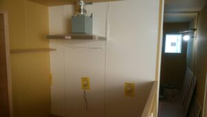 レンジフードのダクト工事をどこかの監督に似ている人がやってますね!