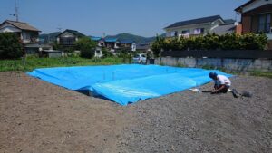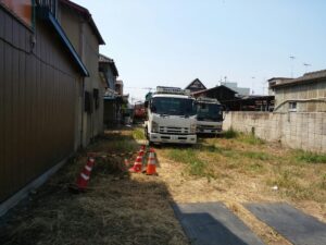 こちらも暑い中ご苦労様です。11日の地鎮祭に向け順調に進んでいます。