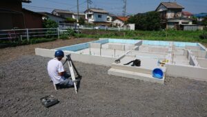 こちらは、足利市、大沼田町のN様邸です。今日は、明日土台敷の為、墨だし~レベルを行いました。