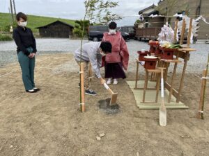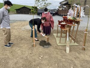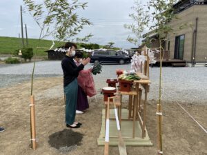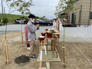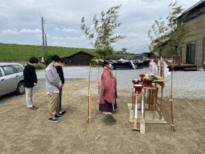今日は、雨がふらないうちに無事に地鎮祭を終了することができました。