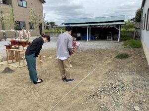 M様今日は、地鎮祭おめでとうございます。18日の午後から工事の段取りをはじめますが