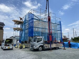 今日は、前日上棟しました(上棟時の写真です)下羽田町のM様邸の報告です。