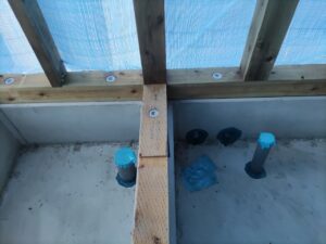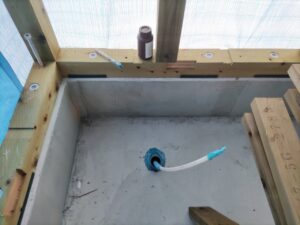 このように、配管まわりは、青い液体の防蟻材を塗布をして10年保証とします。