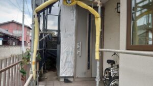 こちらは、太田市のS様邸です。今日も木部外壁部分の工事を行いました。