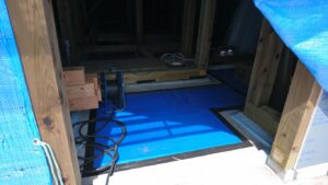 室内の玄関養生もできました。今日は、「イケメン大工カワマー」棟梁お休みです。