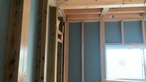 室内も段々進んでいます。ボード張り残りまで進むと