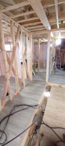 室内も段々進んでいます。ボード張り残りまで進むと