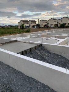今日も暑くなりました。 今日は、1件基礎工事が終了しましたので完成までの流れをUPしますね!