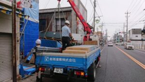場所が狭いので路上駐車(誘導員アンボン頑張ってくだい)で素早く搬入します。