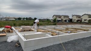 昨日の並木町F様邸の基礎完成の写真です。昨日は、青空でした。